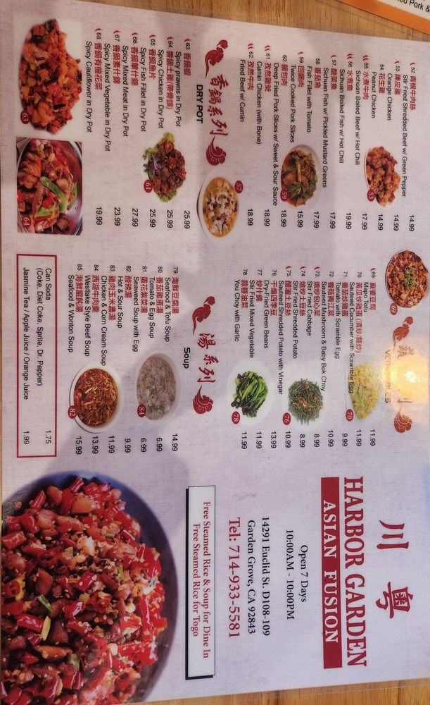 Harbor Garden, a Chinese restaurant located in Garden Grove, CA, offers a variety of delicious dishes that will satisfy your taste buds. With options for delivery, takeout, and reservations, Harbor Garden provides convenience for all diners. The restaurant has a casual ambiance with moderate noise levels, making it a great spot for groups. Additionally, the private lot parking and attentive waiter service add to the overall dining experience. From traditional favorites to innovative creations, Harbor Garden's menu is sure to impress. The flavors and presentation of the dishes showcase the culinary expertise of the chefs. Overall, Harbor Garden is a must-visit for Chinese cuisine lovers looking for a memorable dining experience.